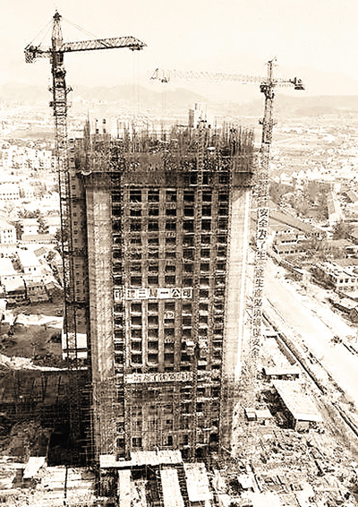 从1983年6月到10月,中建三局整整进行了4个月的技术攻关。此后,国贸大厦工程建设就越干越顺,速度越来越快:第5至10楼,7天一层;第11至20楼,5天一层;第21至30楼,4天一层;到了30楼以上,进度达到了3天一层,最快是两天半一层!那时候,中央电视台《新闻联播》平均每周都会播发一条关于深圳的新闻报道,画面中最常出现的就是这座正在一天天长高的中国第一高楼。从那时起,“深圳速度”就在全国传开了。