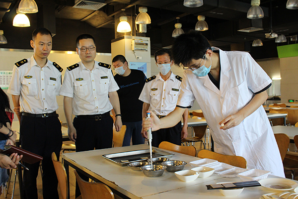 据了解,该餐厅为盐田港区最大的员工餐厅,为近3000名员工提供用餐。检查小组评估了餐厅食品卫生管理的落实情况,具体包括餐厅食品加工场所和工作流程的各项卫生制度措施的落实情况,食品原辅料采购、供应流程的证票及相关溯源记录,以及食品从业人员个人卫生习惯等,对现场发现的不足向企业提出整改建议并督促后续落实。此外,该局还发挥技术执法优势,由实验室对餐厅原材料开展农残快速检测,对餐厅自来水和餐具的清洗和保洁开展微生物学实验室检测。