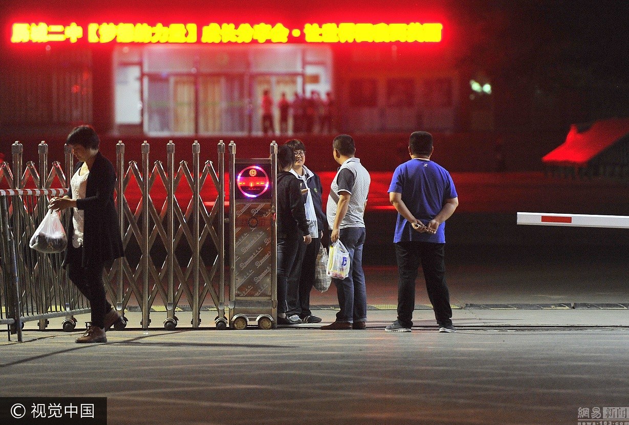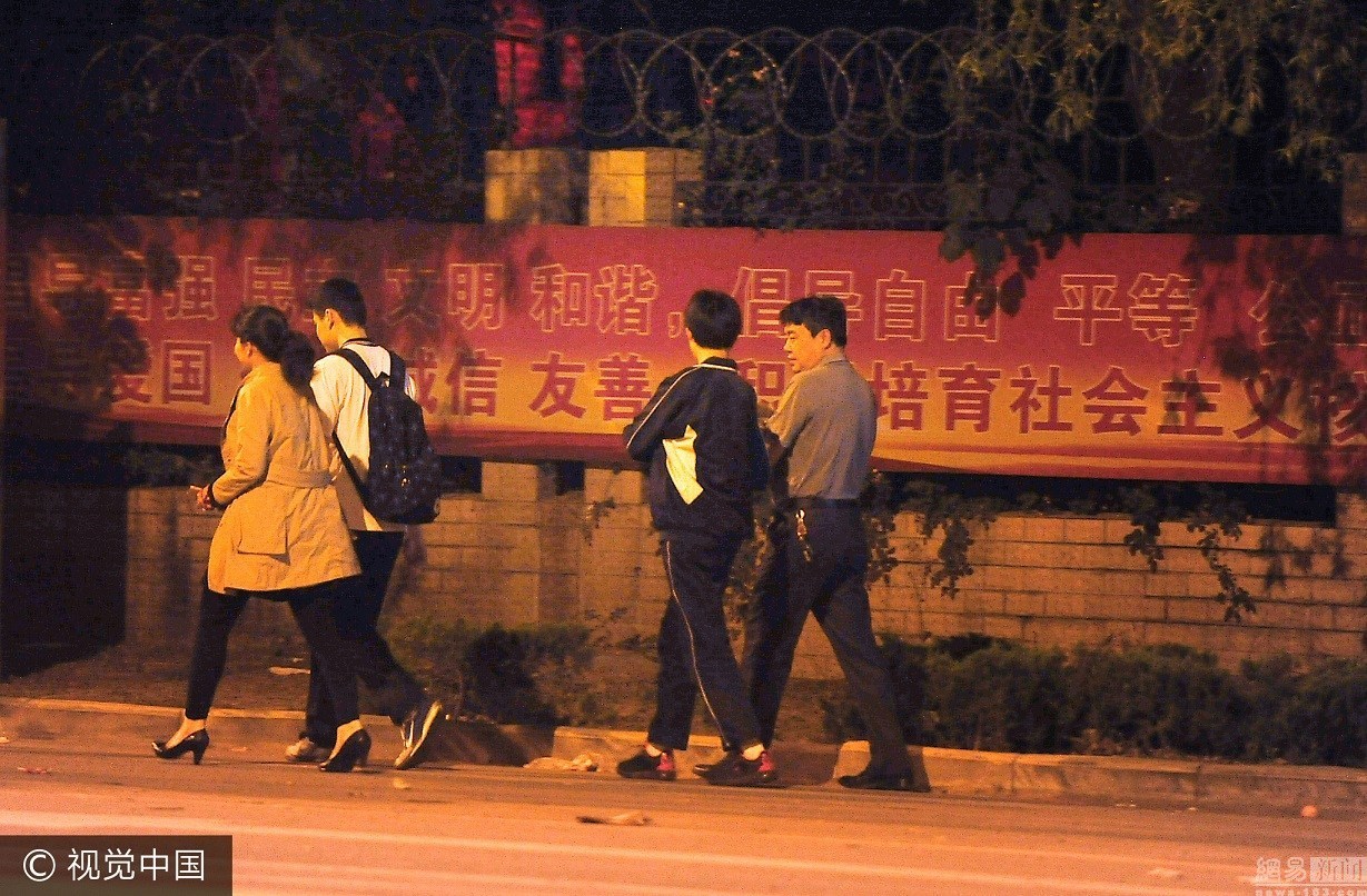 图为家长在等孩子下晚自习。图片来源:视觉中国