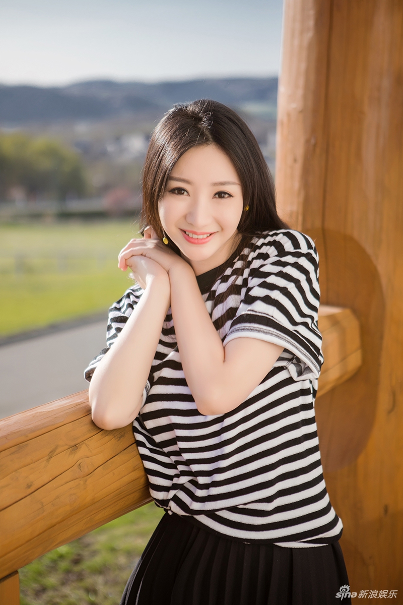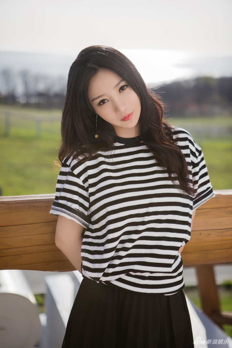 柳岩黑白条纹T恤藏不住傲人身材 甜笑似少女