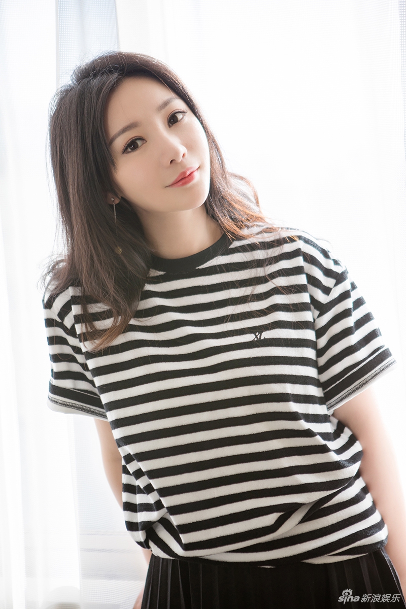 柳岩黑白条纹T恤藏不住傲人身材 甜笑似少女