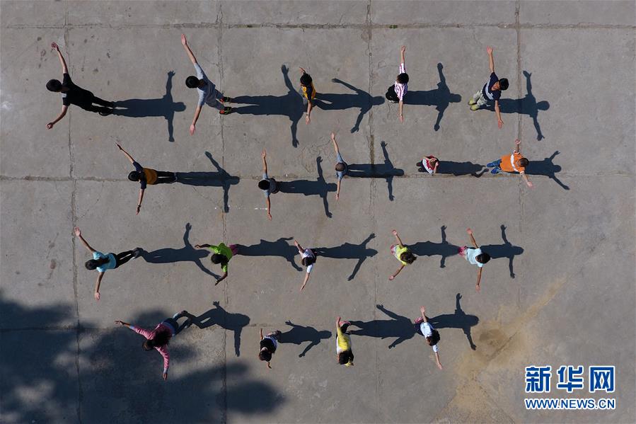 5月25日,在山西临汾红丝带学校,孩子们在排练毕业典礼上的节目。