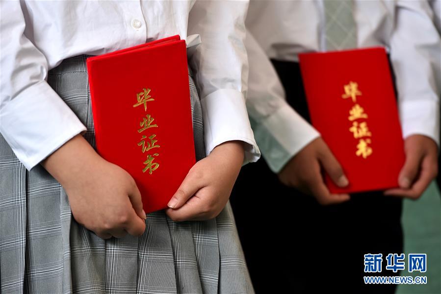 5月26日,在山西临汾红丝带学校,高中三年级的学生在毕业典礼上。