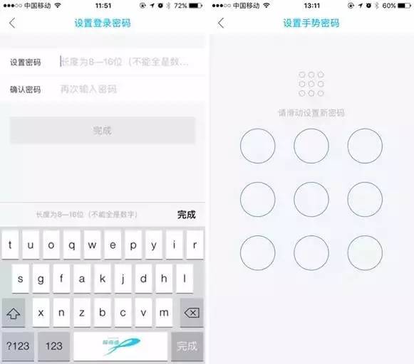 ,第一次注册登录的用户可以按照提示设置登录密码和手势密码。