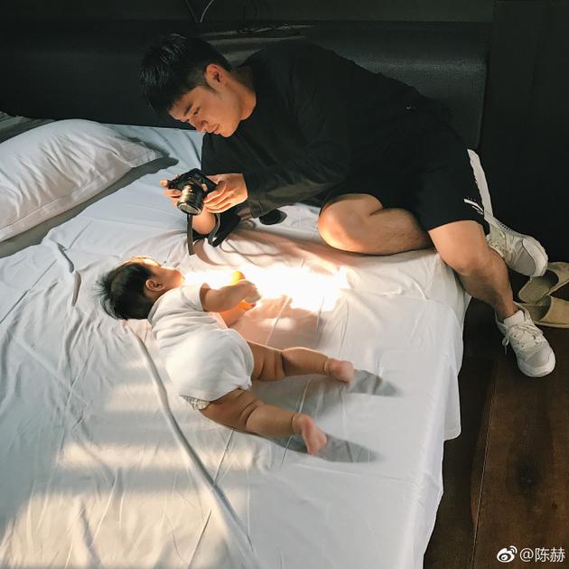 5月26日,陈赫在微博上发文称“你这个可爱的家伙!”并晒出了自己女儿萌萌哒的照片。照片中,陈赫的女儿趴在床上,陈赫拿着相机正要给她照相。小公主身穿一身白衣,抬头呆呆地望着爸爸手里的相机,样子简直可爱极了!