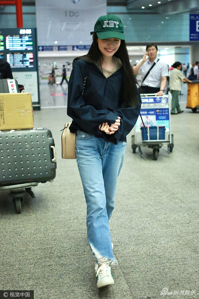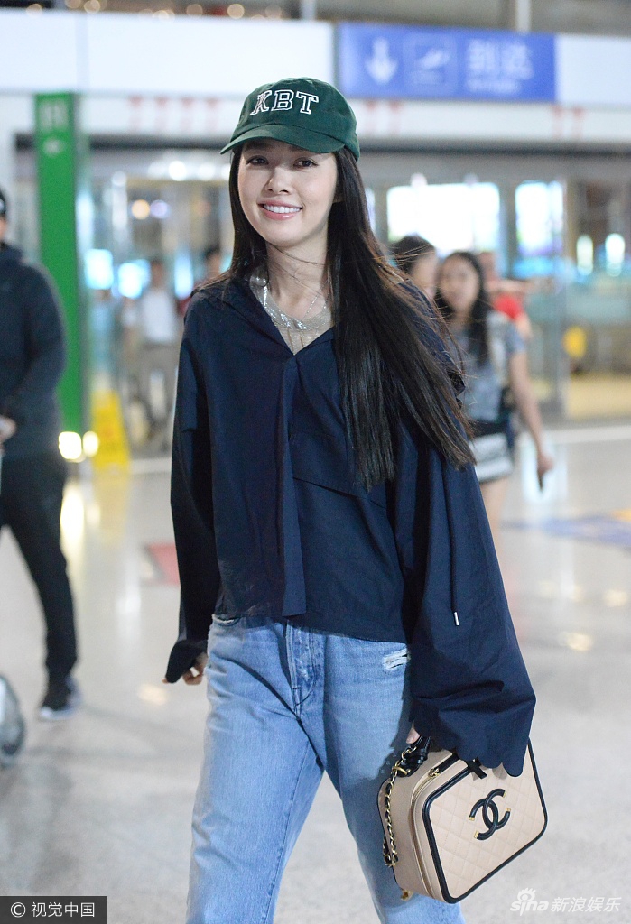5月26日,郭碧婷现身首都机场,她身穿休闲装戴棒球帽造型简约时尚,素颜不惧镜头露甜笑举手投足女神范儿。
