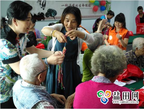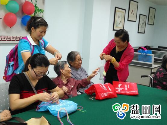 深圳新闻网讯(记者 邓雪婷 通讯员 杨秀娥)5月26日,盐田街道文化体育活动中心组织20多名文化志愿者到盐田区福利院慰问老人,提前陪伴他们过端午节。本次活动内容,主要陪老人聊天,教他们学做简单手工编织(蛋袋),表演文艺节目,与老人同唱一首歌。活动开始志愿者们各自找老人聊天,并一对一辅导编织,老人亲手完成作品后露出满意笑容,随后观看志愿者们自编自演的文艺节目,柔力球《一路歌唱》,洗衣舞,葫芦丝演奏《映山红》,独唱《爱在天地间》。最后与老年人同唱《茉莉花》《大中国》,这些音乐曲目节奏欢快、朗朗上口的经典老歌。老年人平均年龄83岁,最大年纪95岁,活动现场氛围活跃、温馨感人。