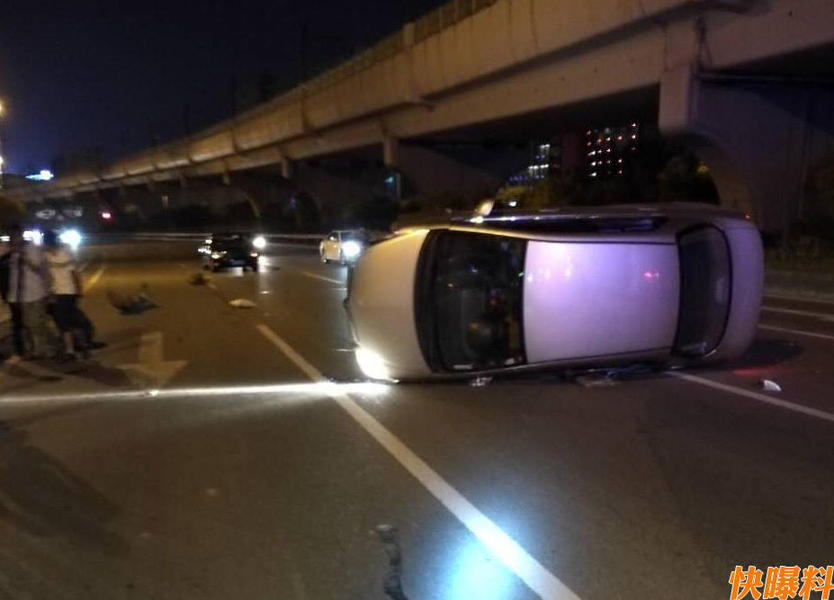 5月29日凌晨2点15分,网友马先生向“快曝料”报料称,当晚1点左右,他出勤处理一宗交通事故时,看到一个高难度的翻车现场:一辆车侧躺在马路上。