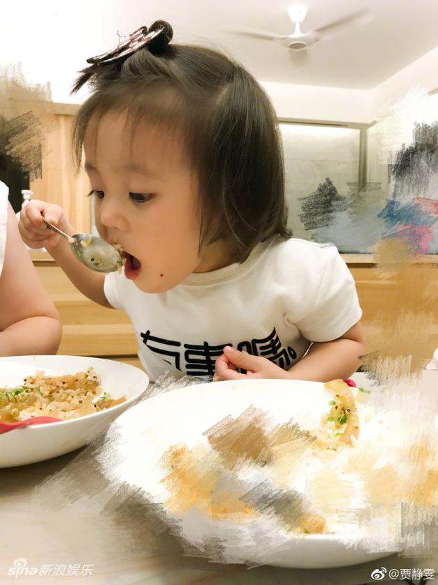 5月30日,贾静雯微博发文第一次尝试做姜汁烧肉丼,并表示女儿咘咘十分爱吃,还晒出咘咘正在吃饭的照片,网友们也表示:“看上去好好吃!”