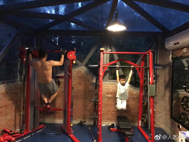 5月30日晚,胡军老婆卢芳通过微博晒儿子和老公健身房的照片,并称:“不只有小情人。”照片中,康康一身休闲运动装,单杠和哑铃随意玩耍,而身后的胡军光着上身,也在卖力的做运动,身上的肌肉明星可见。