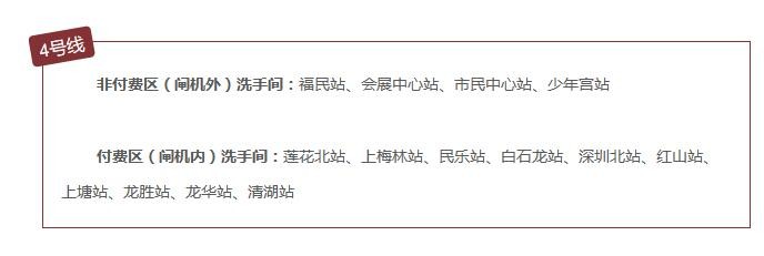 地铁1号线、2号线、3号线、5号线所有站的厕所都是在闸机外(非付费区)的哦!