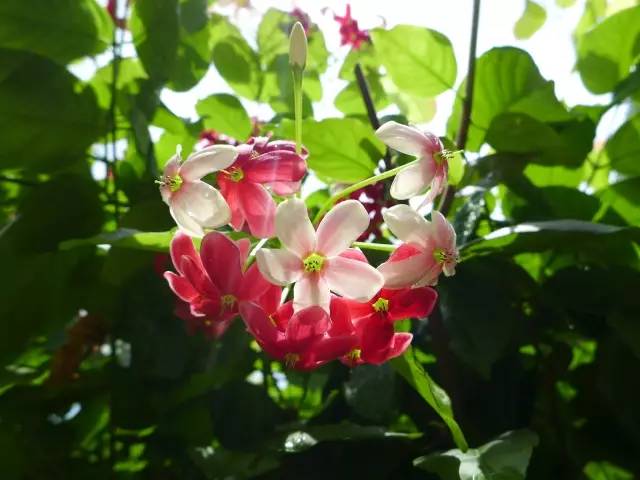木质藤本。穗状花序,花瓣5枚,有香气,初开时白色,后变为粉红至红色。