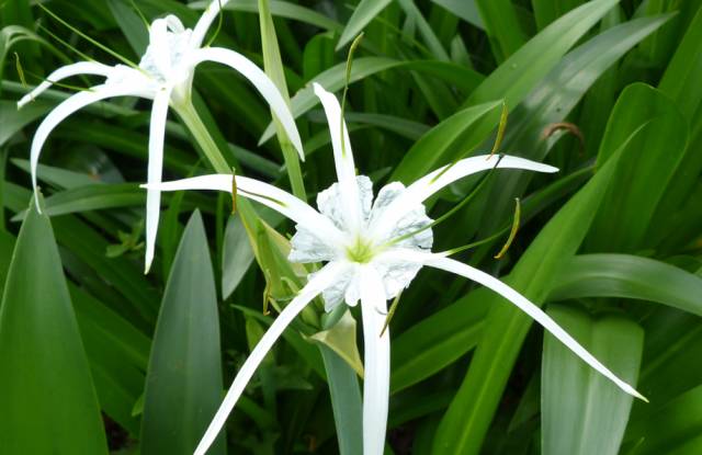 本种叶丛亮绿健壮,花白色,花姿仿若蜘蛛,形态别致。