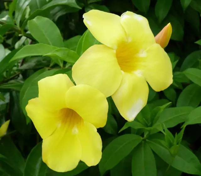 蔓性灌木,分枝柔软下垂,叶3-4枚轮生或2片对生,聚伞花序生于枝顶或叶腋,花冠黄色,漏斗状。本种花大色艳,花期长,盛花期花多而密(常见的还有黄蝉)。