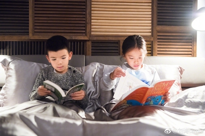 刘涛儿女一起看书一起长大 姐弟和睦很有爱