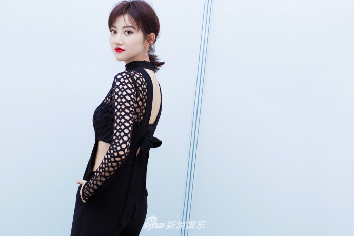 景甜红唇玩转性感御姐风 黑色镂空装秀小蛮腰