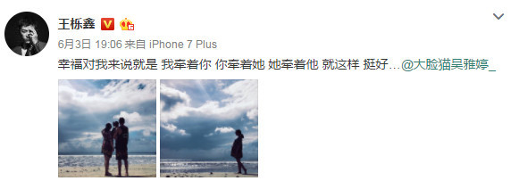 王栎鑫晒一家“四口”合影 宣布妻子怀二胎(图)