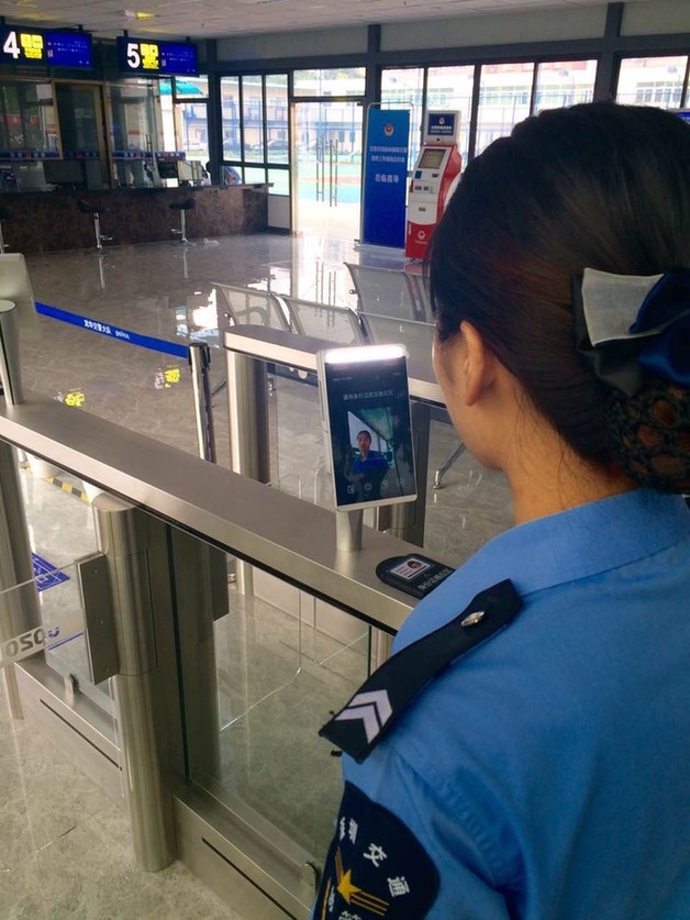 闸机正进行人脸识别。