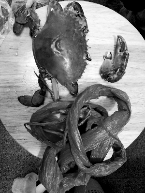 原标题:螃蟹“花式”绑绳增重 皮筋绑绳可占总重量一半(组图)