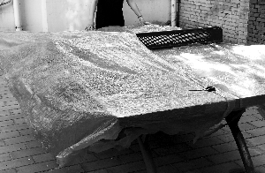 记者握紧双手一攥,塑料绳子里的水便顺势淌出,很是夸张。拆掉外边粗重的红色塑料绳,发现里边还有红色的绑带绑着螃蟹的大钳子。将螃蟹带回家后,记者将这条捆绑的塑料绳解开,一张湿漉漉的,宽1.2米、长约8米的巨大塑料膜展现在眼前。万万想不到,这一只巴掌大的螃蟹,身上捆绑的塑料绳近10平方米,两张乒乓球桌都铺不下。