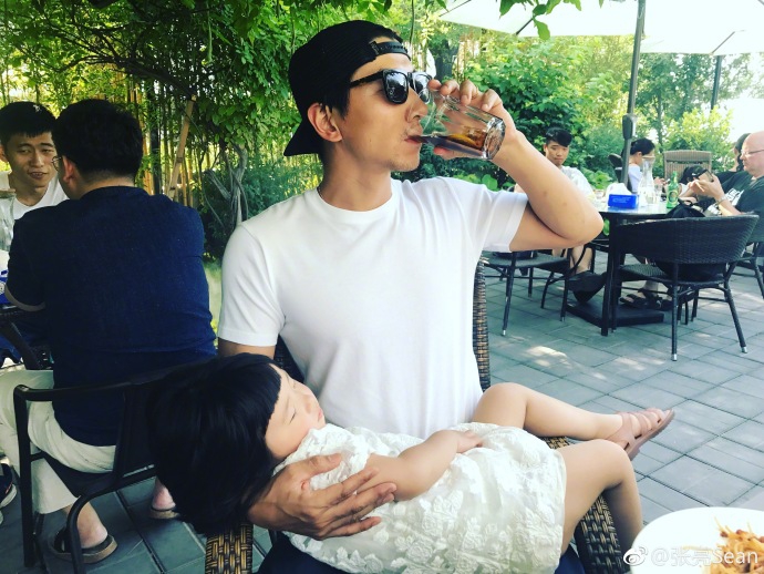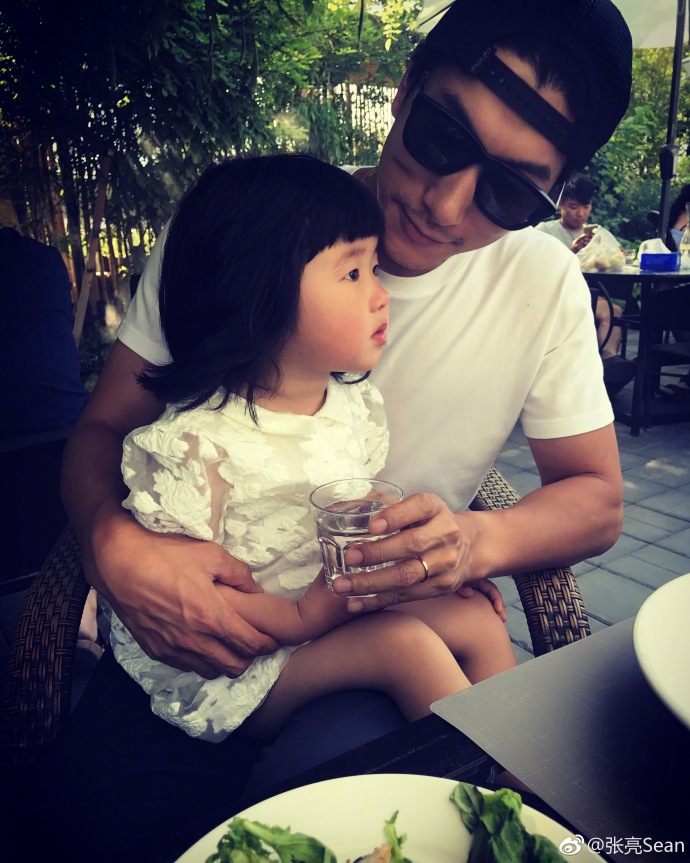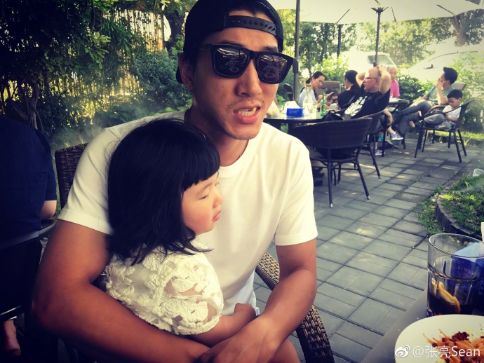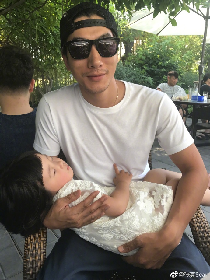 6月5日,张亮在微博上晒出了自己和女儿的合照。照片中,反戴棒球帽,戴着墨镜,紧紧抱住熟睡的女儿,父爱爆棚!
