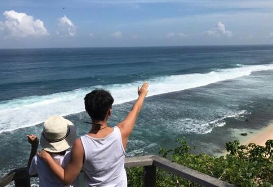 照片中,董子健一手搭在孙怡肩上,一手指向海边的远处,孙怡比着剪刀手,戴着太阳帽,头仅到董子健的颈部,两人形成最美身高差。虽然只是背影,但仍能感觉满满的幸福。