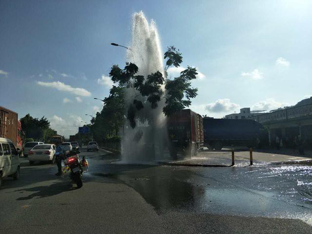 深圳新闻网讯 (记者何畅)据深圳交警微博:6月5日下午16时33分许,深圳坪山交警大队铁骑队民警沿深汕公路巡逻至龙田路口时,发现路面出现"喷泉",强大的冲击力将边上树枝冲断。该路段路面出现积水,影响车辆通行,存在较大的安全隐患。铁骑队员快速做好现场防护,联系区消防部门及时维修消防设施,及时清理路面障碍物。经查,一货车司机在倒车时操作不当,导致车辆撞上路边的消防栓,目前,交警正在调查处理。