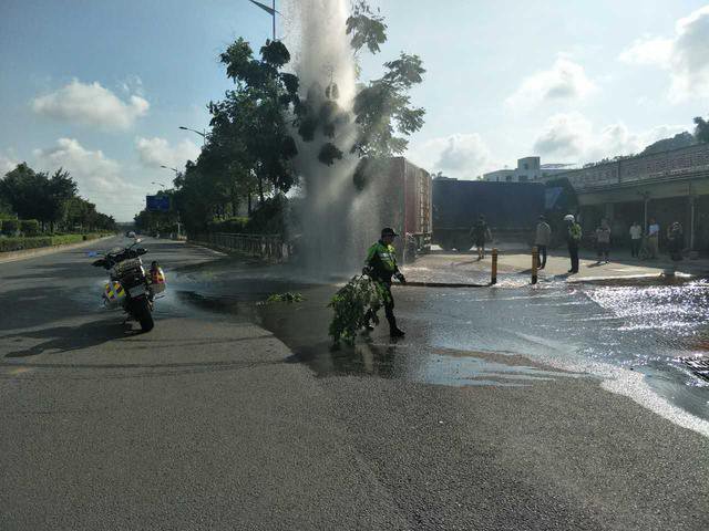 坪山路面突现大“喷泉” 竟是货车倒车导致