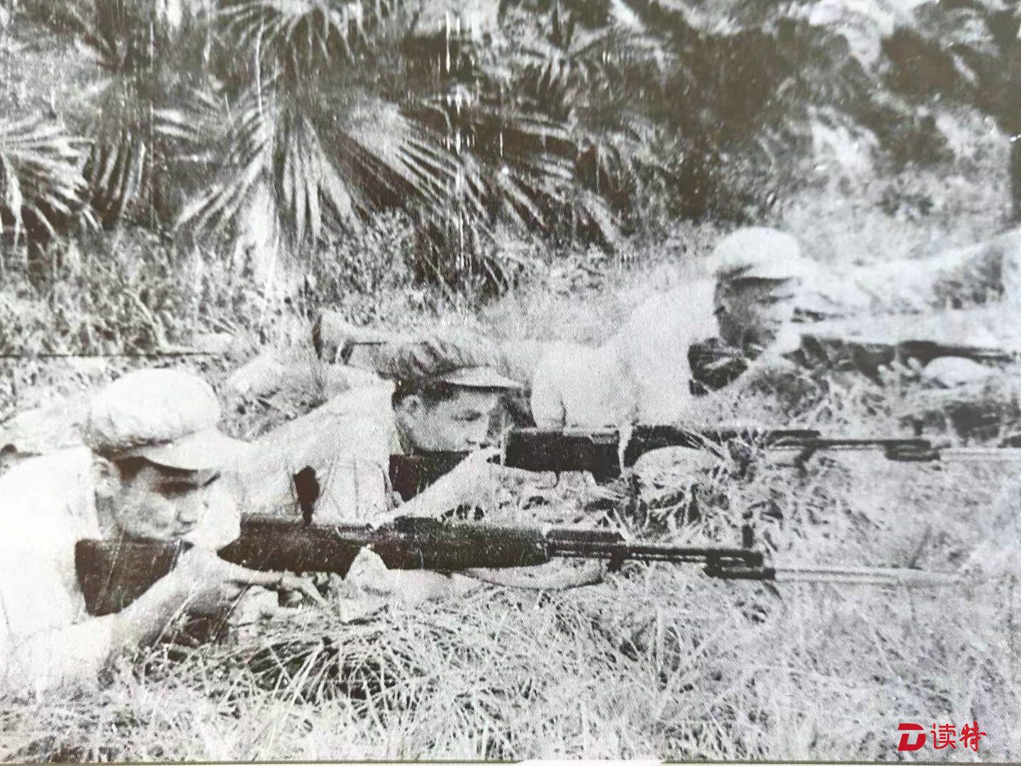 当年军训。(中间为郑齐明)