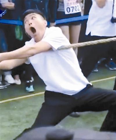 我这个人平时鬼点子就比较多,所以比赛之前就想了这个“战术”,比赛的时候并没有告诉我们队友,比赛前我才和队友说,一会儿拔河的时候无论发生什么都不要笑就好,而且要把我排在第一个的位置上,我是背对着我的队友,面对着对手,所以面部表情基本只有对手能看到,也只能对他们产生影响。