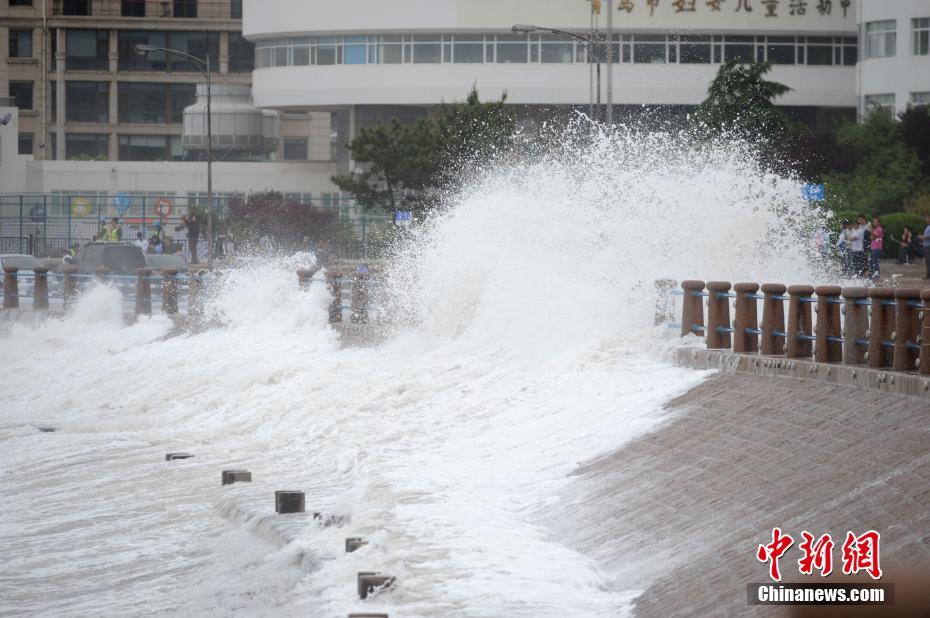 青岛沿海掀10多米高巨浪 游客冒险拍照