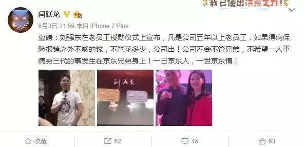 小编注意到,与苏宁同为竞争对手的京东也非常重视员工福利。6月3日,前京东商城公关关系部总监闫跃龙就发微博称: