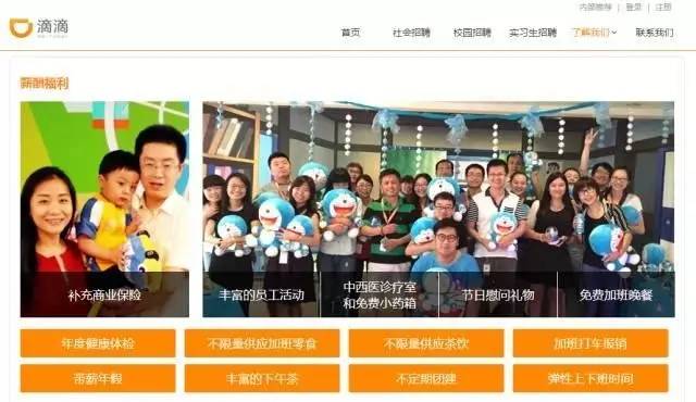 而滴滴出行则为员工提供补充商业保险,而作为一家打车软件公司,他们在官网也特别提到“ 加班打车报销”这项福利。