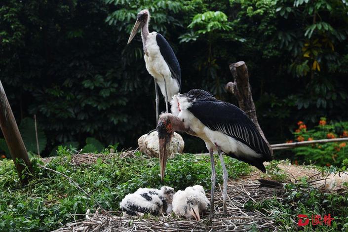 6月11日,记者从深圳野生动物园获悉,该园里的非洲秃鹳家族又新添了两只秃鹳宝宝。