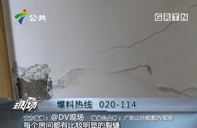 居民:"每天就睡在工地,醒来抬头就看到裂痕,你说我们生活多揪心。"在一位业主的家里,记者看到客厅和卧室的墙上有数条很长的裂缝。天花板的梁上,洗手池后面的墙壁,客厅的电视机上方,每个房间都有比较明显的裂缝。这一系列现象,在南荔苑小区里引起了关注,各位业主纷纷开始自检自查。
