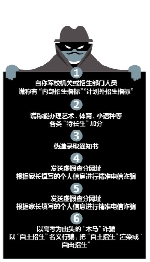 深圳新闻网讯 据新华社电每年高招录取期间,总有不法分子利用考生和家长急迫心情,设局诈骗。有关部门提醒家长谨防所谓“分不够,钱来凑”的虚假招生承诺,以及“内部指标”、虚假查分网址等诈骗手段。