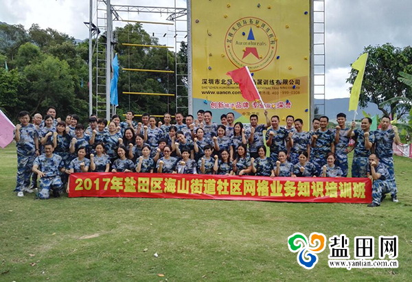 除了专业知识培训外,海山街道社区网格管中心还组织所有参加培训的人员参与了军事拓展训练,借助军事化训练内容和军事化管理的手段,培养网格员的集体荣誉感和团队凝聚力。