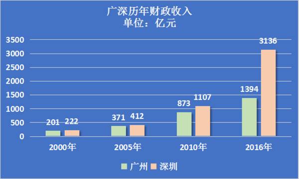 2、财政收入超过广州:2016年,深圳市公共财政收入超过7900亿元,比2015年增长9.1%。京沪深包揽前三名成为新常态。