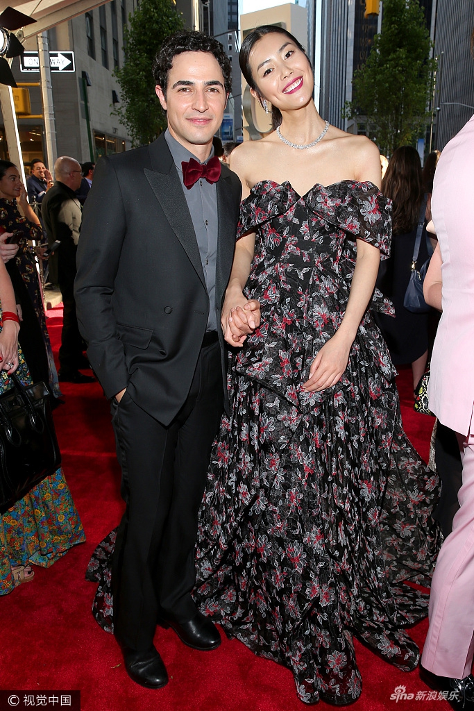 当地时间2017年6月11日,美国纽约,2017托尼奖颁奖礼(2017 Tony Awards)。“大表姐”刘雯抹胸长裙仙气儿足,与扎克·珀森 (Zac Posen)相拥。视觉中国/图