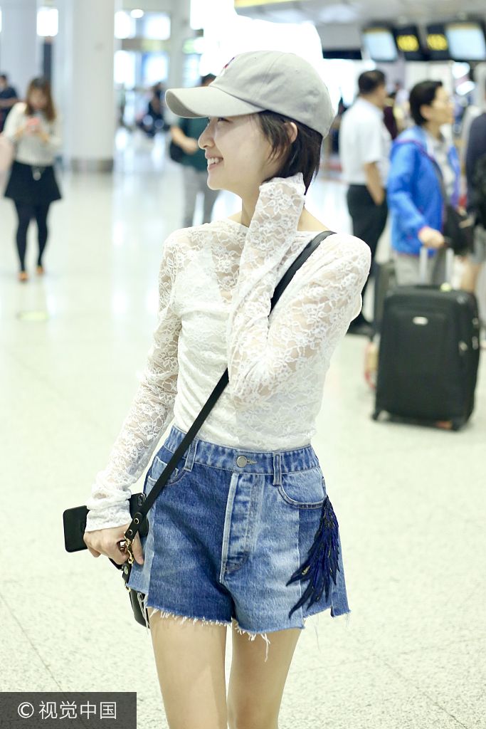 6月13日,周冬雨现身北京机场。周冬雨身穿白色蕾丝上衣搭配热裤,在机场大秀美腿,帅气不失女人味。她一路挠耳托腮忙着找路,一脸呆萌,可爱十足。(视觉中国/图)