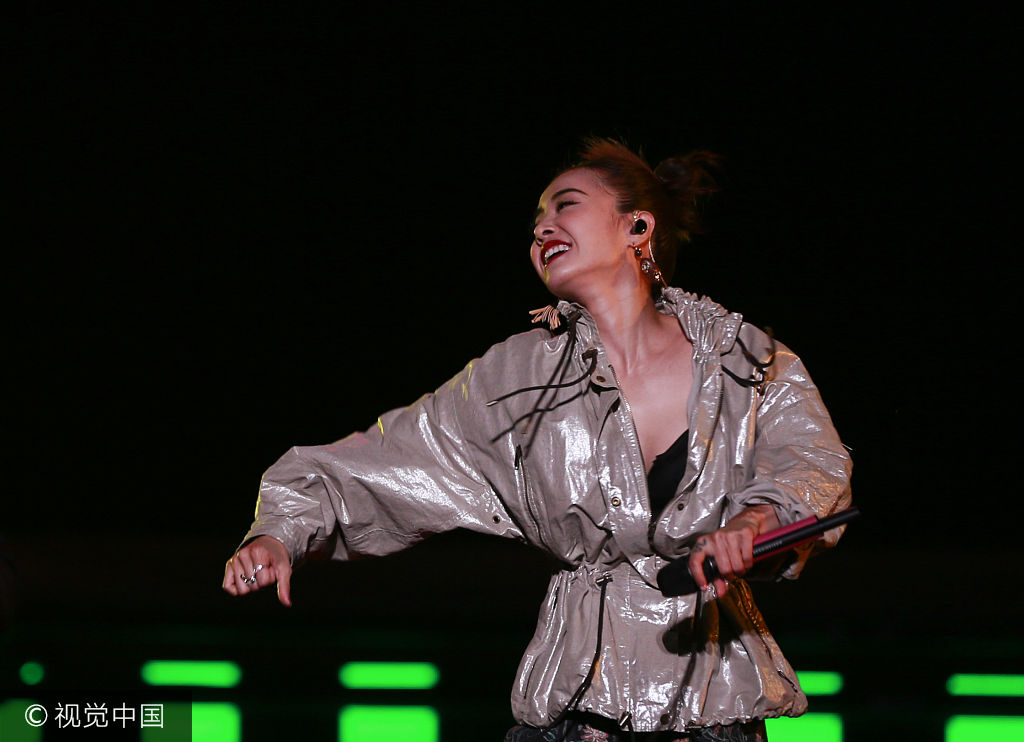 2017年6月13日讯,江苏省淮安市,6月12日晚,衣着宽松的蔡依林登台献唱劲歌热舞大秀酥胸,忘我演出压轴整台晚会。(视觉中国/图)