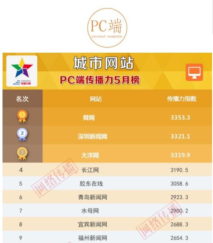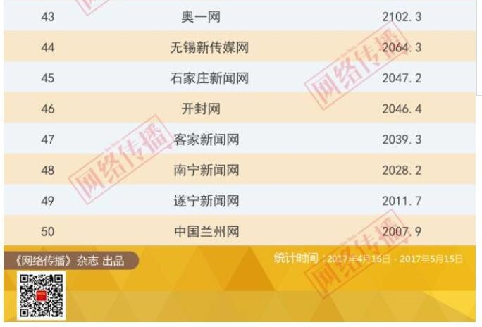城市网站传播力2017年5月榜发布 深圳新闻网又拿了第一