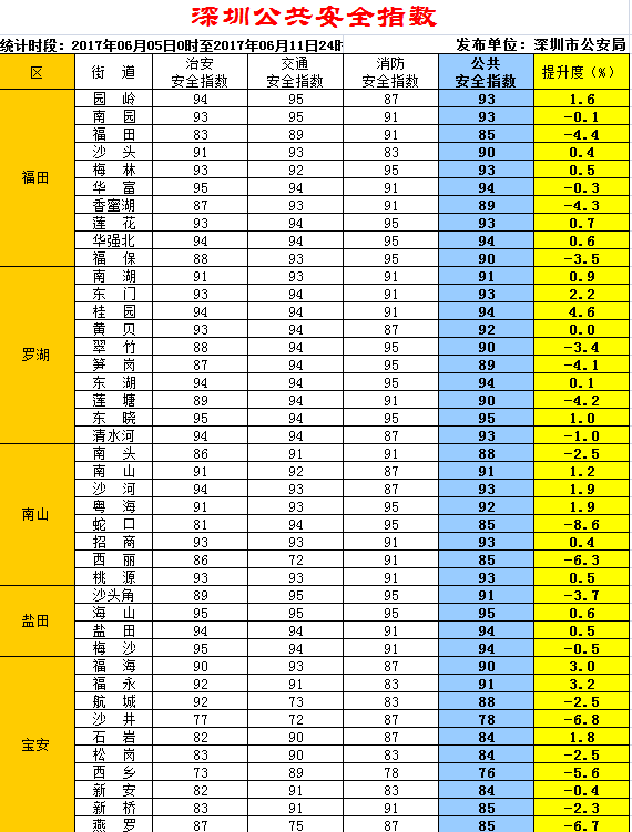 最新深圳公共安全指数发布 你所在街道拿了多少分?