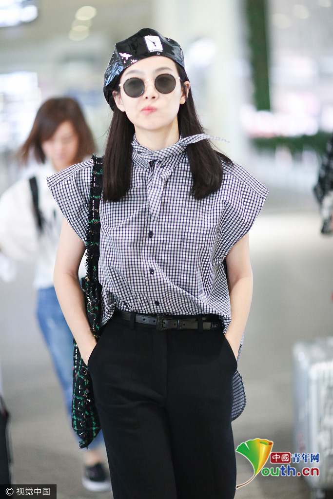 6月13日,宋茜身着格子衬衫、黑色休闲西裤现身杭州机场,一路手机玩不停见镜头挥手微笑,双手插兜耍帅嘟嘴卖萌表情丰富。