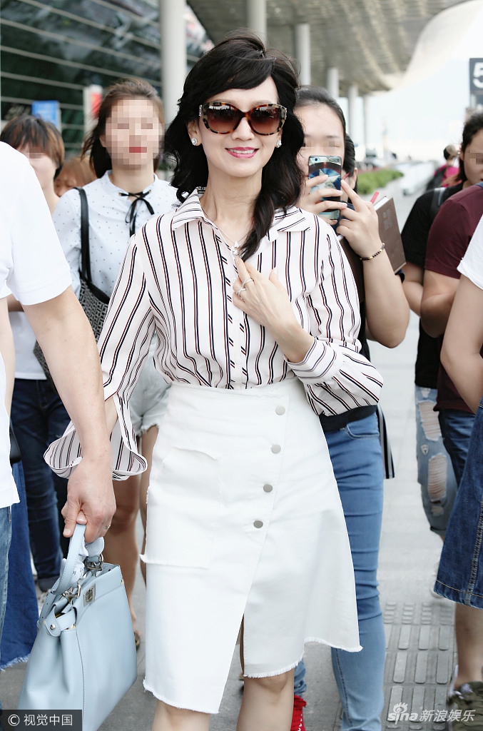6月14日,赵雅芝夫妇抵达深圳宝安机场,黑超遮面的俩人默契穿上白色服装,一路牵手同行,羡煞旁人!(视觉中国/图)