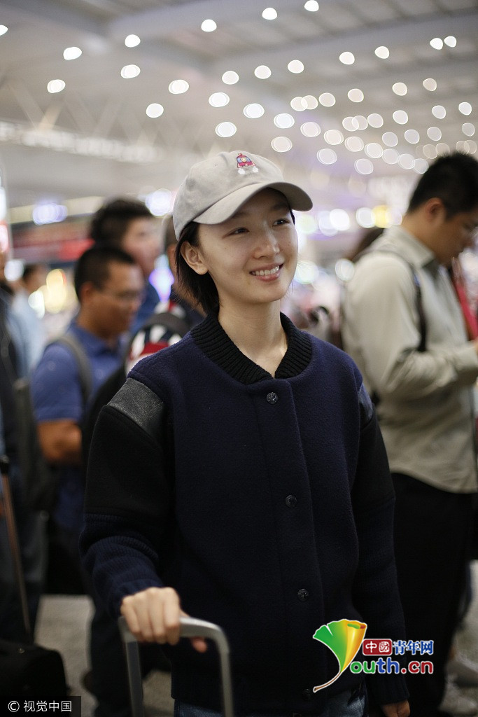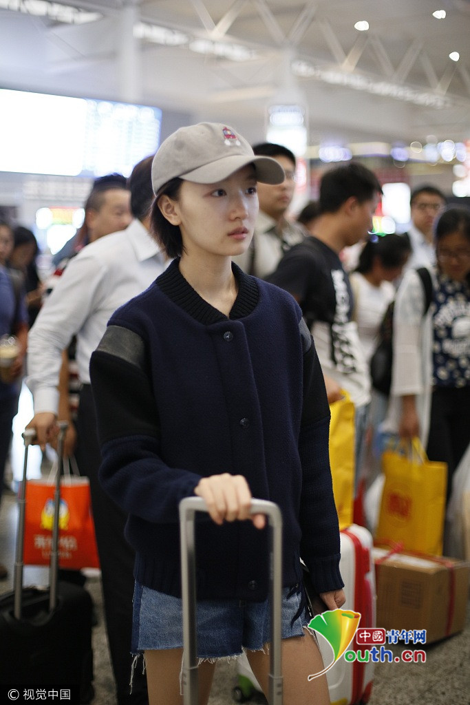 6月14日,周冬雨现身上海高铁站,她身穿棒球外套搭配热裤美腿吸睛,手扶行李箱乖乖排队等候检票,一脸纯真。