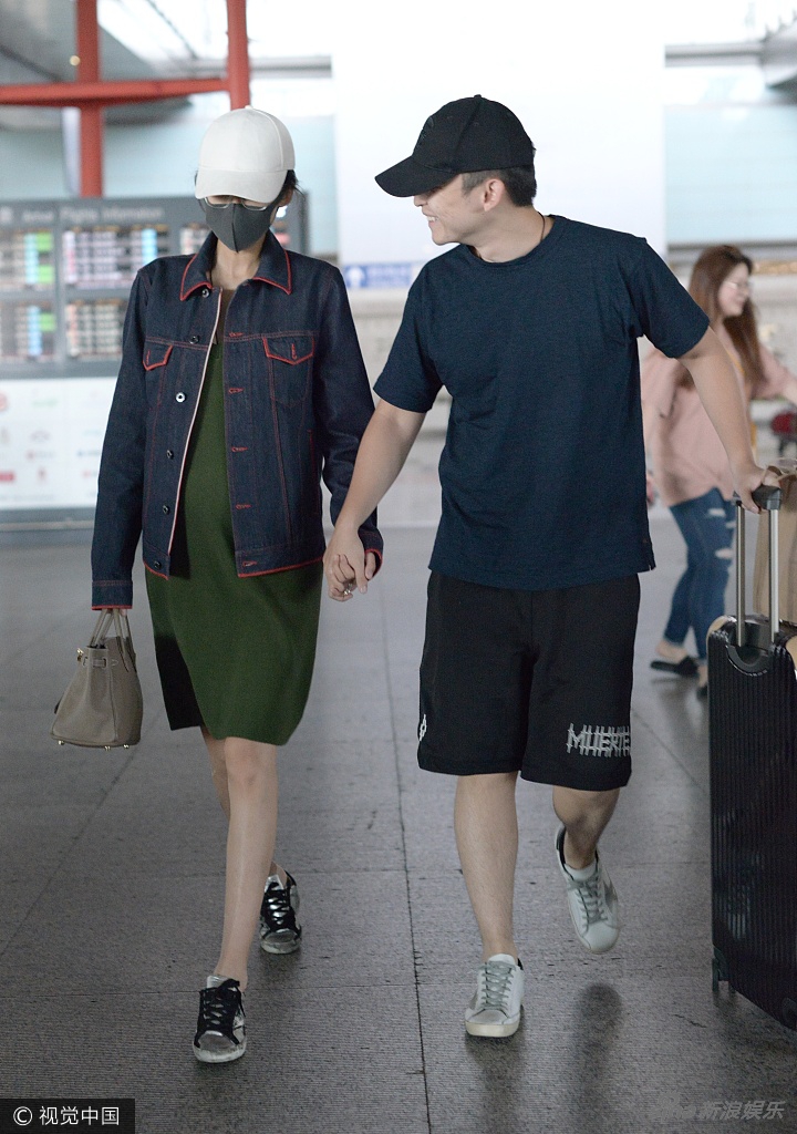 6月14日,孙怡、董子健现身首都机场。一路上董子健非常高兴紧紧牵着怀孕女友的手小心呵护,孙怡身穿宽松裙孕肚明显,全程小鸟依人。