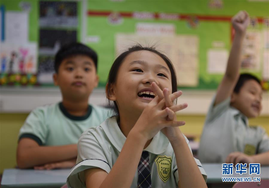 在位于香港东涌的香港教育工作者联会黄楚标学校,文菡在聚精会神地上英语课(5月12日摄)。新华社发(王申 摄)