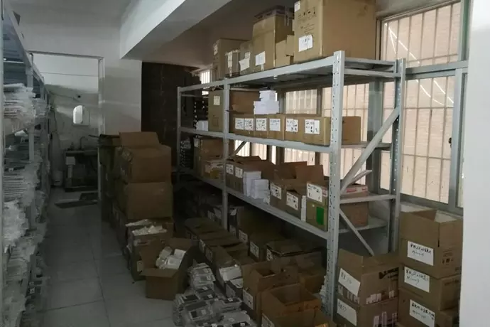 被假货分子盯上的不仅是小米手机壳、电池等配件,还有小米充电宝。雷军曾表示,小米移动电源占了80%的市场份额,但其中却有80%都是假货。日前,小米将北京一商贸中心诉至海淀区法院,称被告商铺内销售的充电宝和耳机上使用了与原告相同的商标,已构成侵权。要求赔偿原告经济损失5万元,并在《中国知识产权报》刊登道歉声明。图为被查封的仓库。