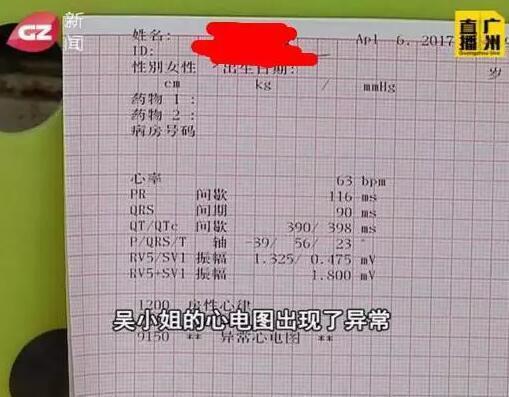 于是吴小姐就回到深圳治疗。回翻到深圳之后,吴小姐马上去到当地医院做检查,通过检验报告可以看出,吴小姐的心电图出现异常。